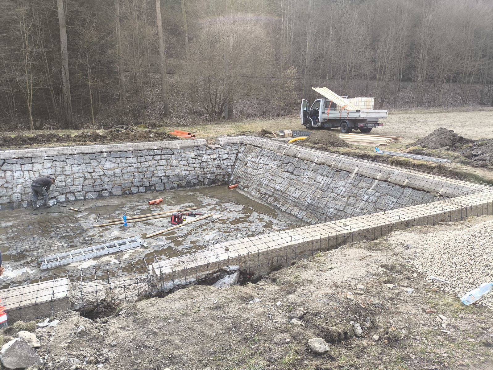 Předmětem veřejné zakázky byla celková rekonstrukce stávající nevyhovující malé vodní nádrže (požární nádrže) v k. ú. Pěčín u Rychnova nad Kněžnou, v obci Pěčín. Celková oprava svahů a dna nádrže byla provedena nástřikem betonové směsi (torkretováním).
