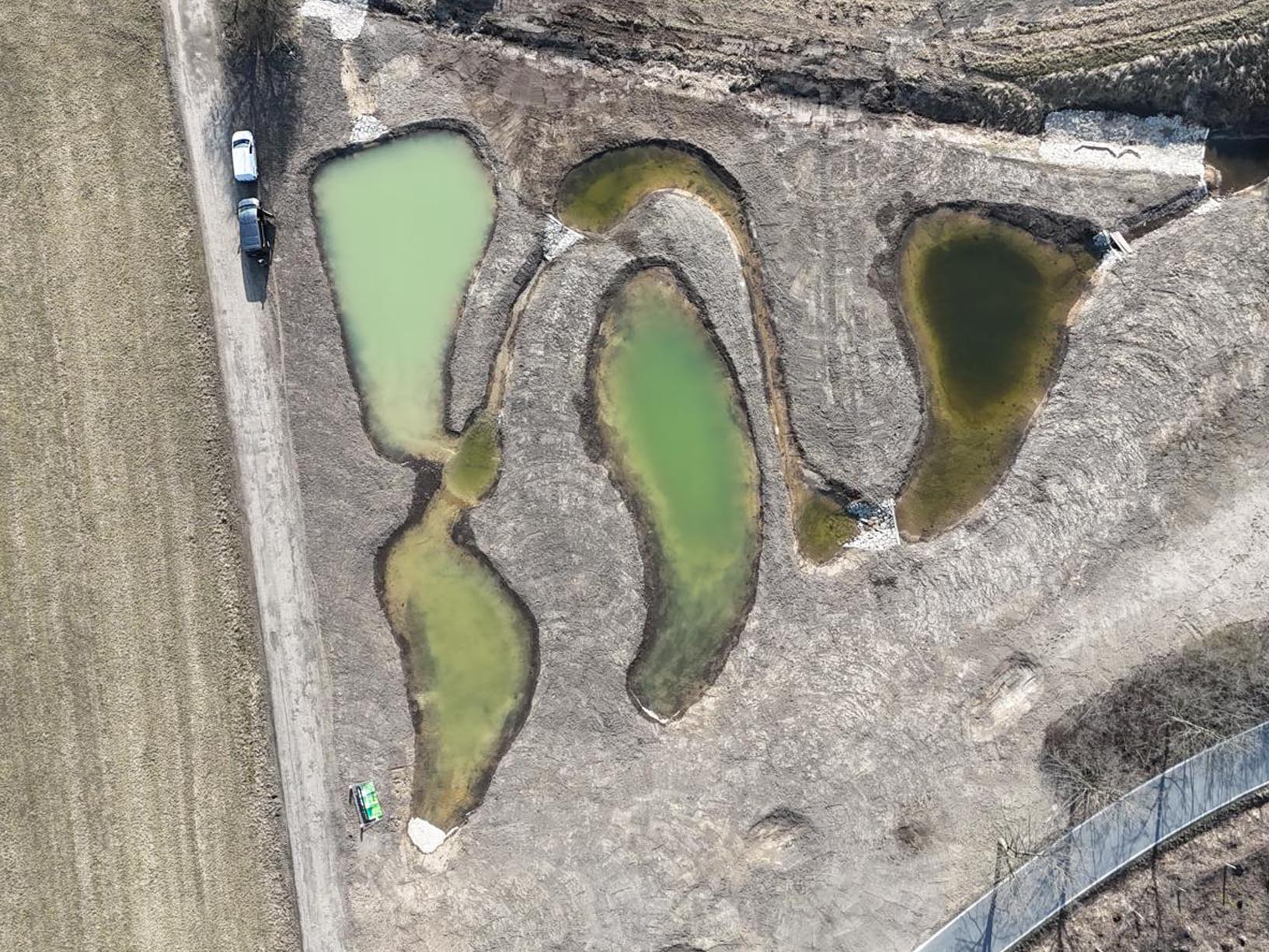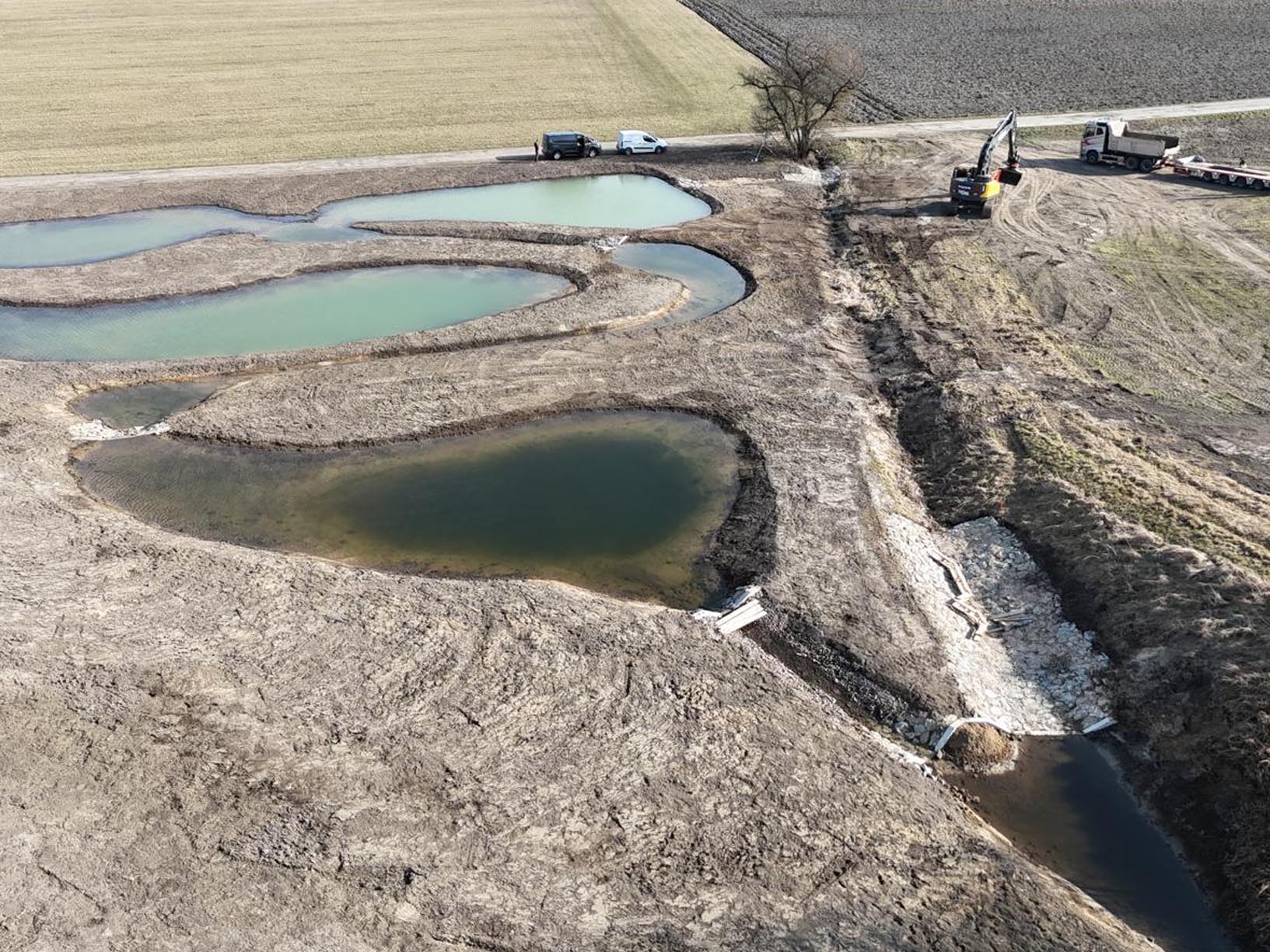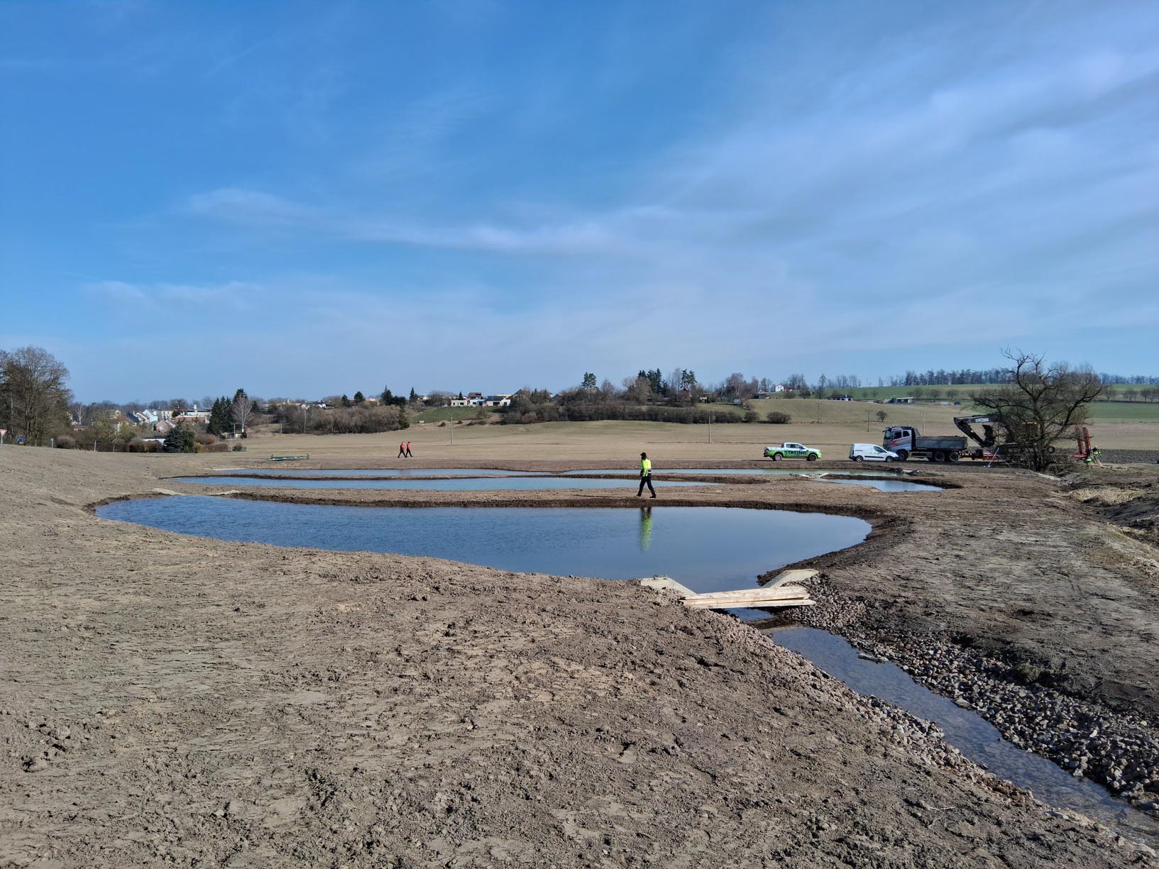 Ukázkový projekt soustavy tůní a mokřadů, který vzniká jako příklad dobré praxe v oblasti zadržování vody v krajině a obnovy přírodního prostředí.