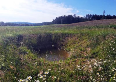 Projekt tůní a mokřadů proměňuje dříve zmeliorovanou louku v živé přírodní území. Vzniká zde místo, kde se voda může znovu přirozeně zastavit, podpořit život rostlin a živočichů a nabídnout prostor k odpočinku i poznávání.